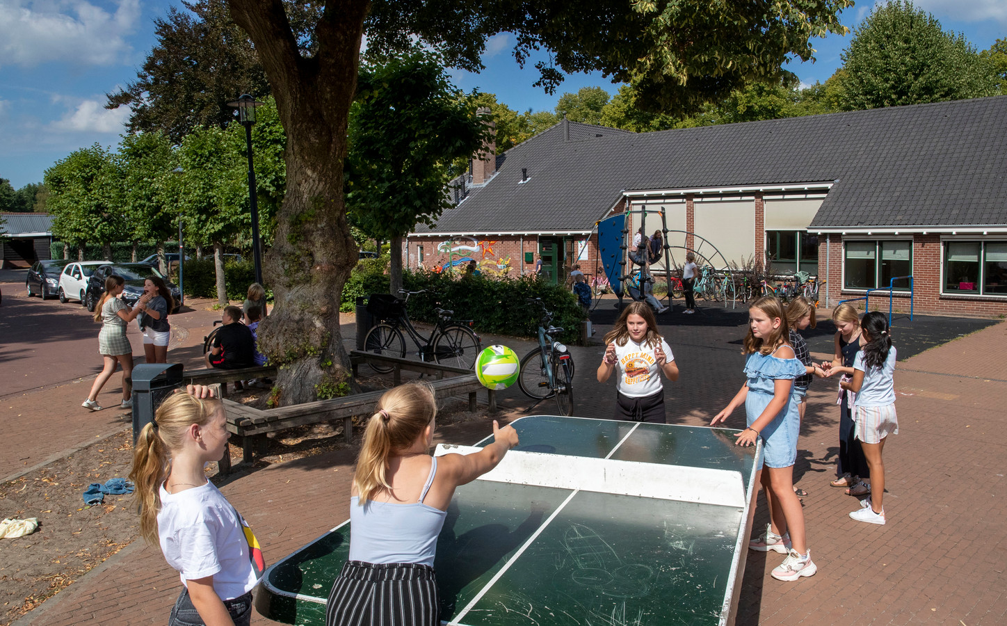 Hymne Champions League galmt over het plein in Otterlo bij de start van het schooljaar Foto