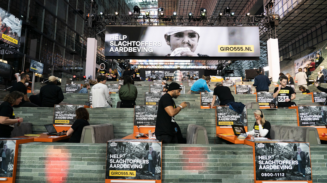 Inzamelingsactie: Giro555 heeft aan het eind van de landelijke actiedag op radio en televisie bijna 89 miljoen euro opgehaald voor de slachtoffers van de aardbevingen in Turkije en Syrië van.
