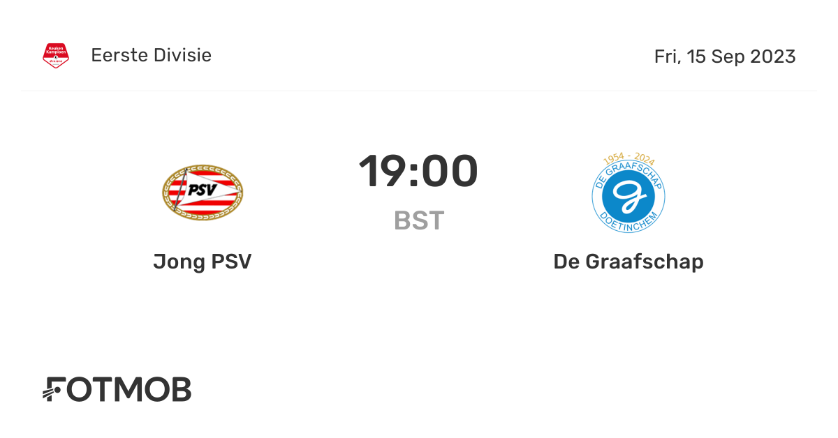 Volleyball. Football. Follow Jong PSV v De Graafschap results, h2h statistics and Jong PSV latest results, news and more information. Flashscore football coverage includes football scores and football news from more than 1000 competitions worldwide. Jong PSV, Real Madrid, Arsenal, Chelsea, Champions League, Copa Libertadores, Serie A,.