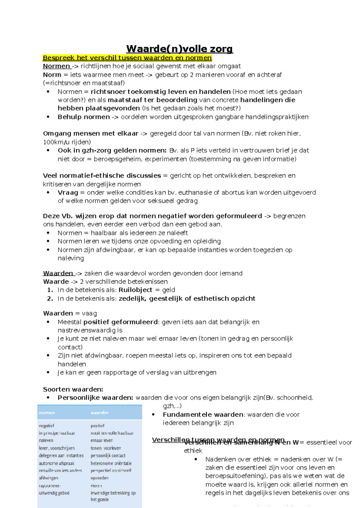Waardenvolle Waarde(n)volle Bespreek het verschil tussen waarden en normen