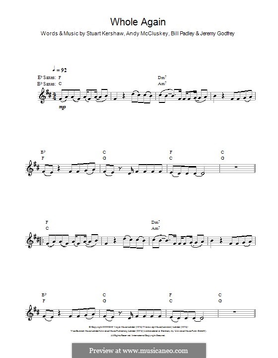 Whole Again chords by Atomic Kitten (Melody Line, Lyrics & Chords 25831)